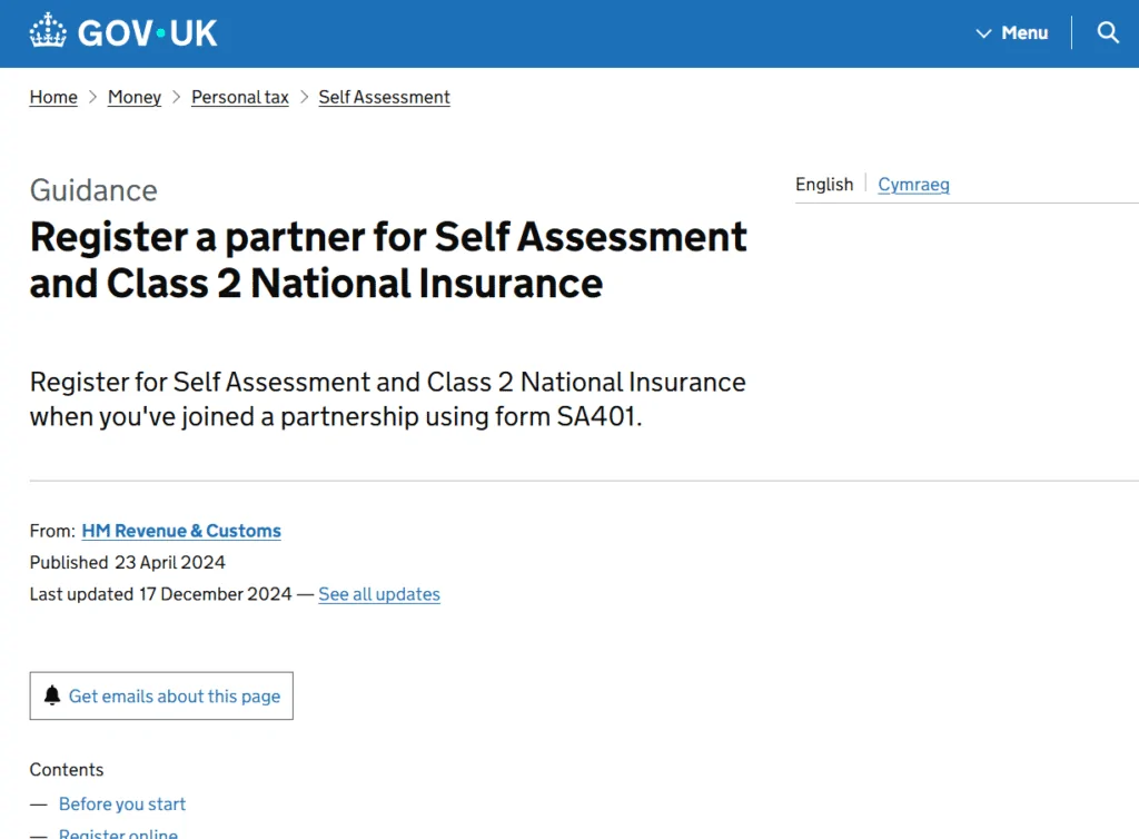 If you have joined a partnership in the UK, you are legally required to register with HMRC using the HMRC Form SA401. This ensures that you are correctly set up for Self Assessment and pay the right amount of tax and National Insurance on your share of partnership profits.