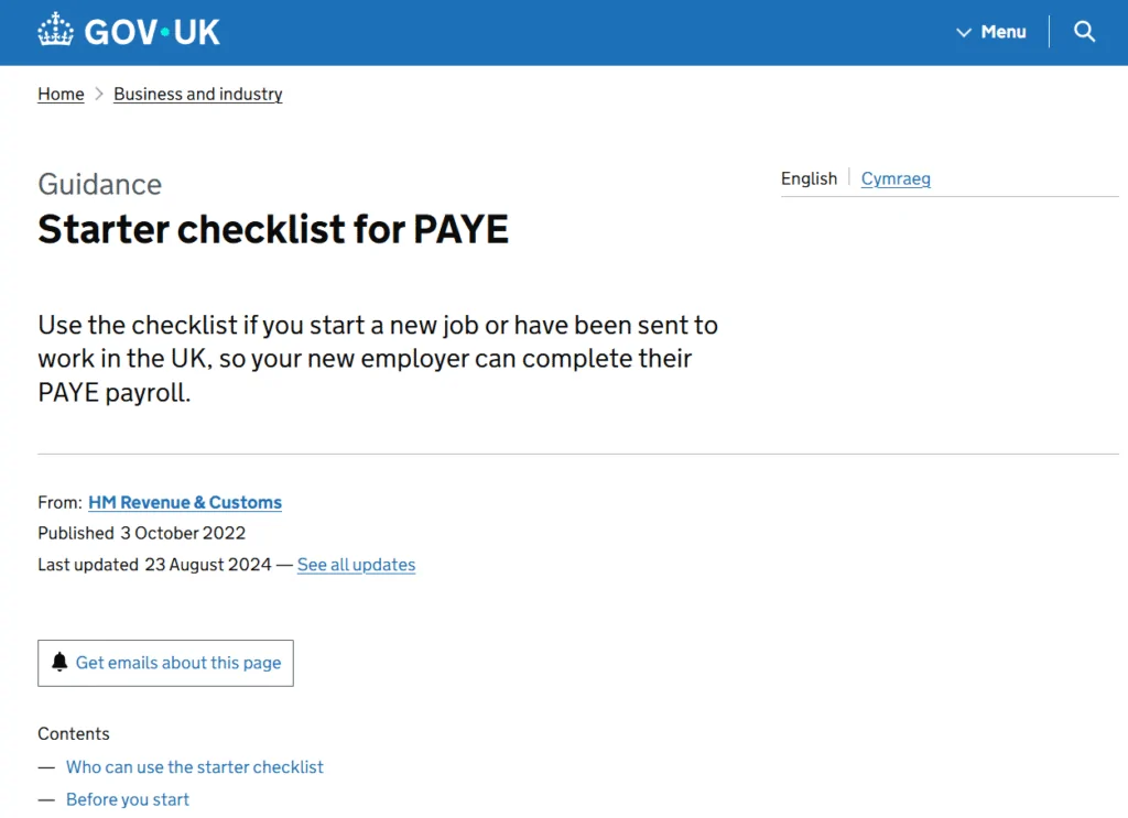 Link: https://www.gov.uk/guidance/starter-checklist-for-paye