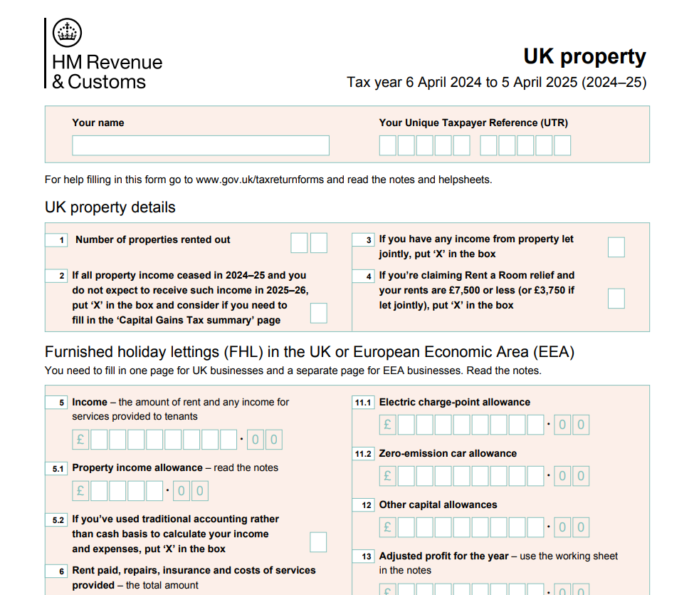 - Capital allowances – if applicable (e.g., furnished holiday lets).