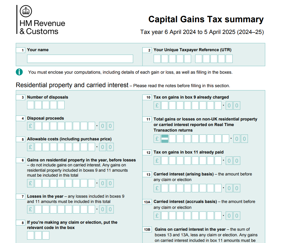 HMRC SA108 Form Explained– Capital Gains Summary Form