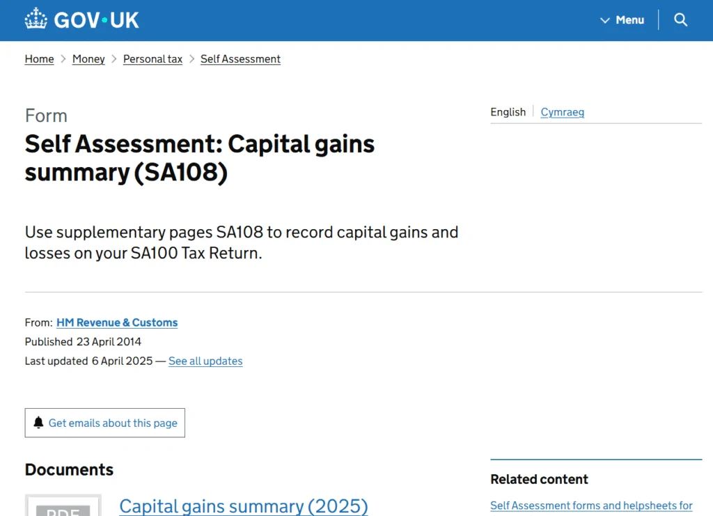 HMRC SA108 Form Explained– Capital Gains Summary Form