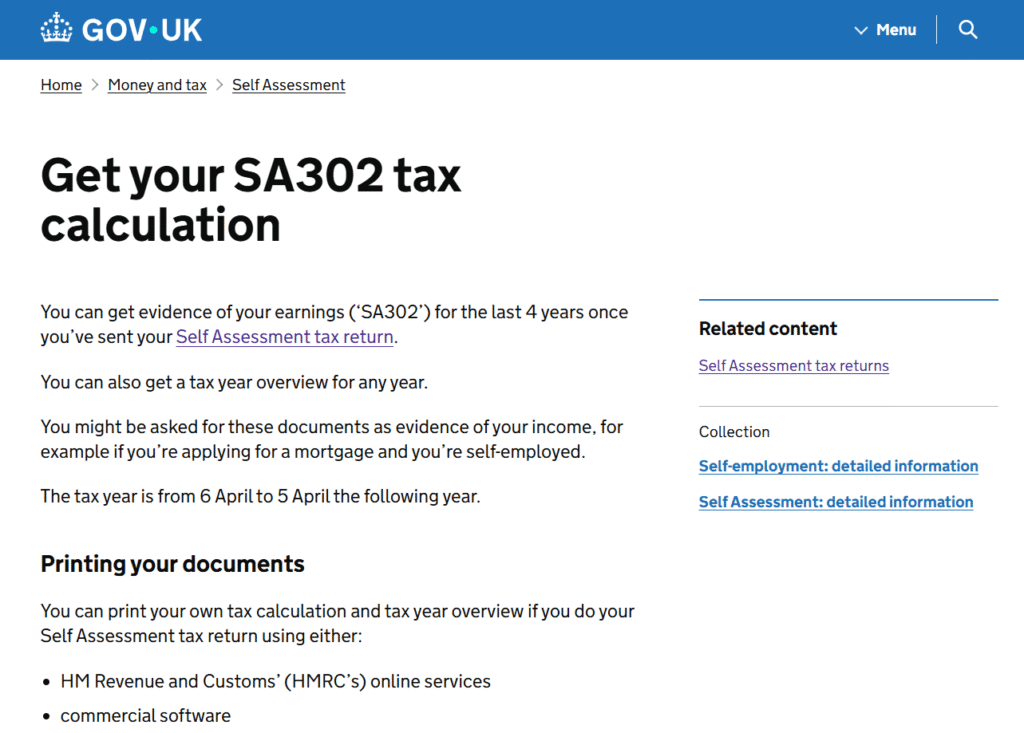 Official HMRC guidance: SA302 tax calculation