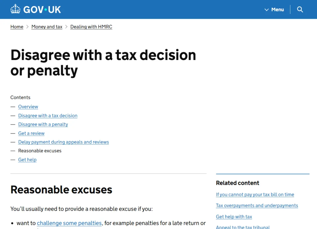 HMRC guidance on reasonable excuses: https://www.gov.uk/tax-appeals/reasonable-excuses