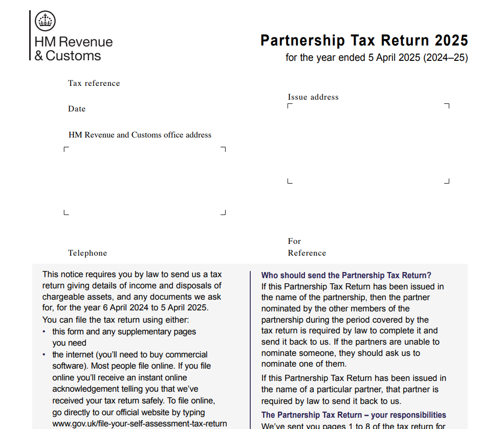 HMRC partnership tax return guidance: https://www.gov.uk/self-assessment-tax-returns/partnerships