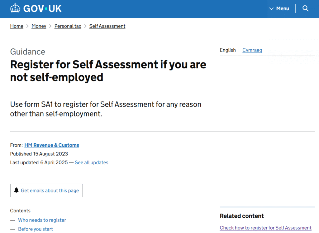 - Explain why you need to register (e.g., rental income, self-employment).