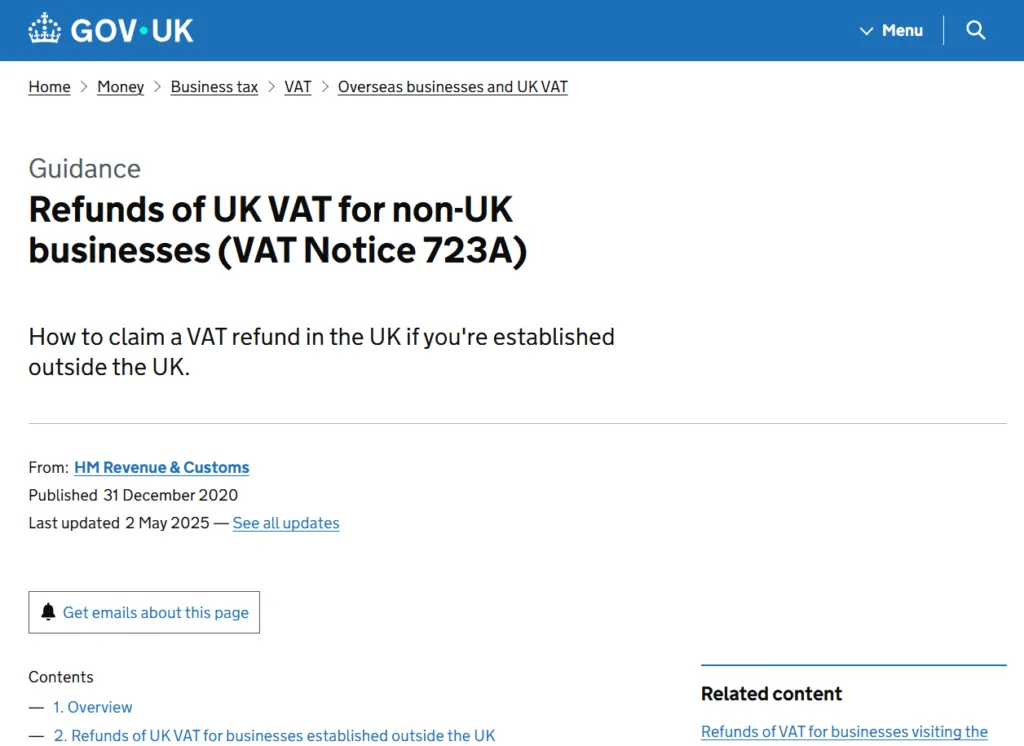 - Submit via your VAT return (UK businesses) or using the relevant VAT reclaim form (foreign businesses).