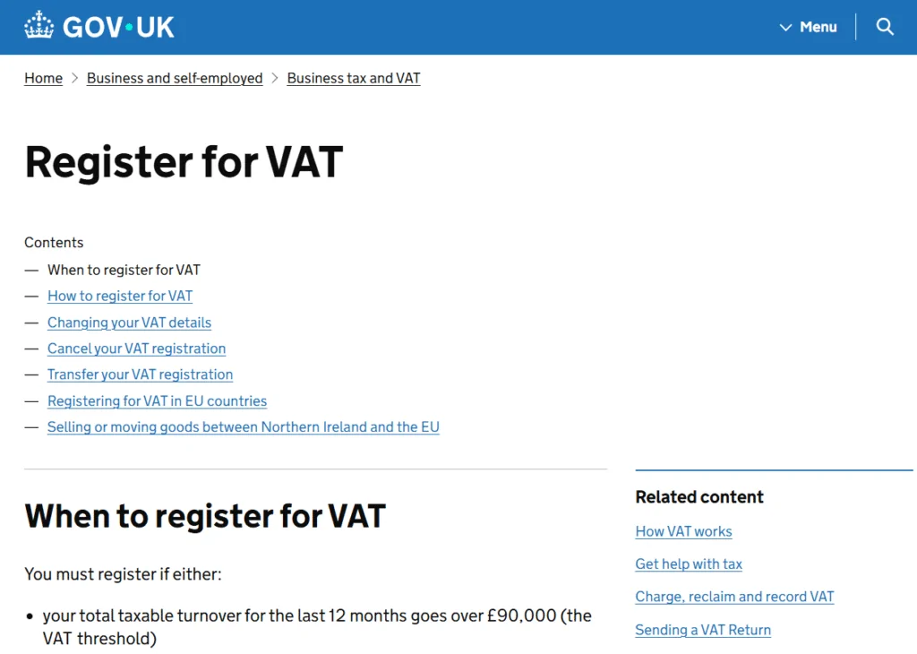 VAT registration and reclaim rules: https://www.gov.uk/register-for-vat